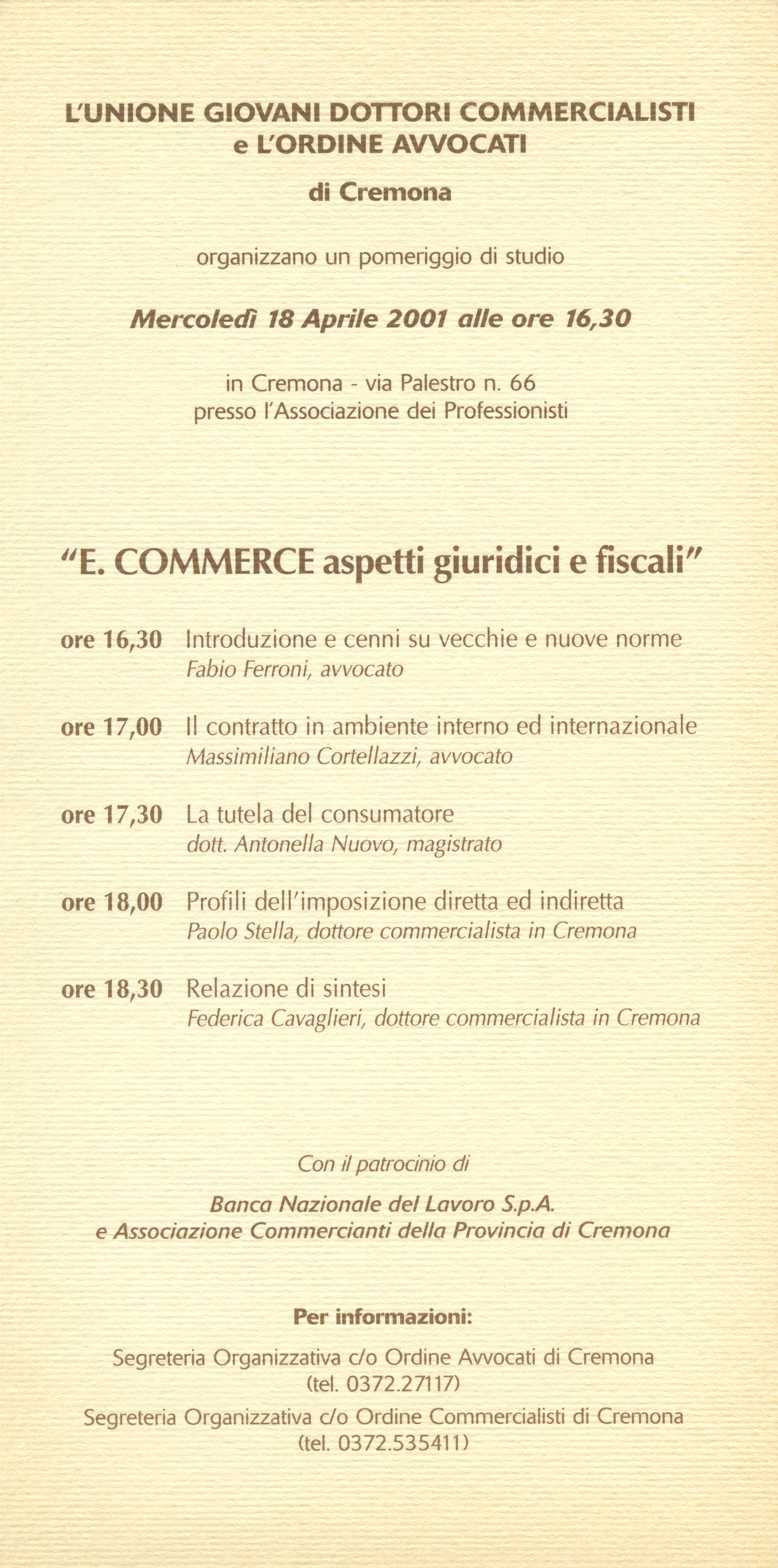 CREMONA, 18 Aprile 2001, Associazione dei Professionisti