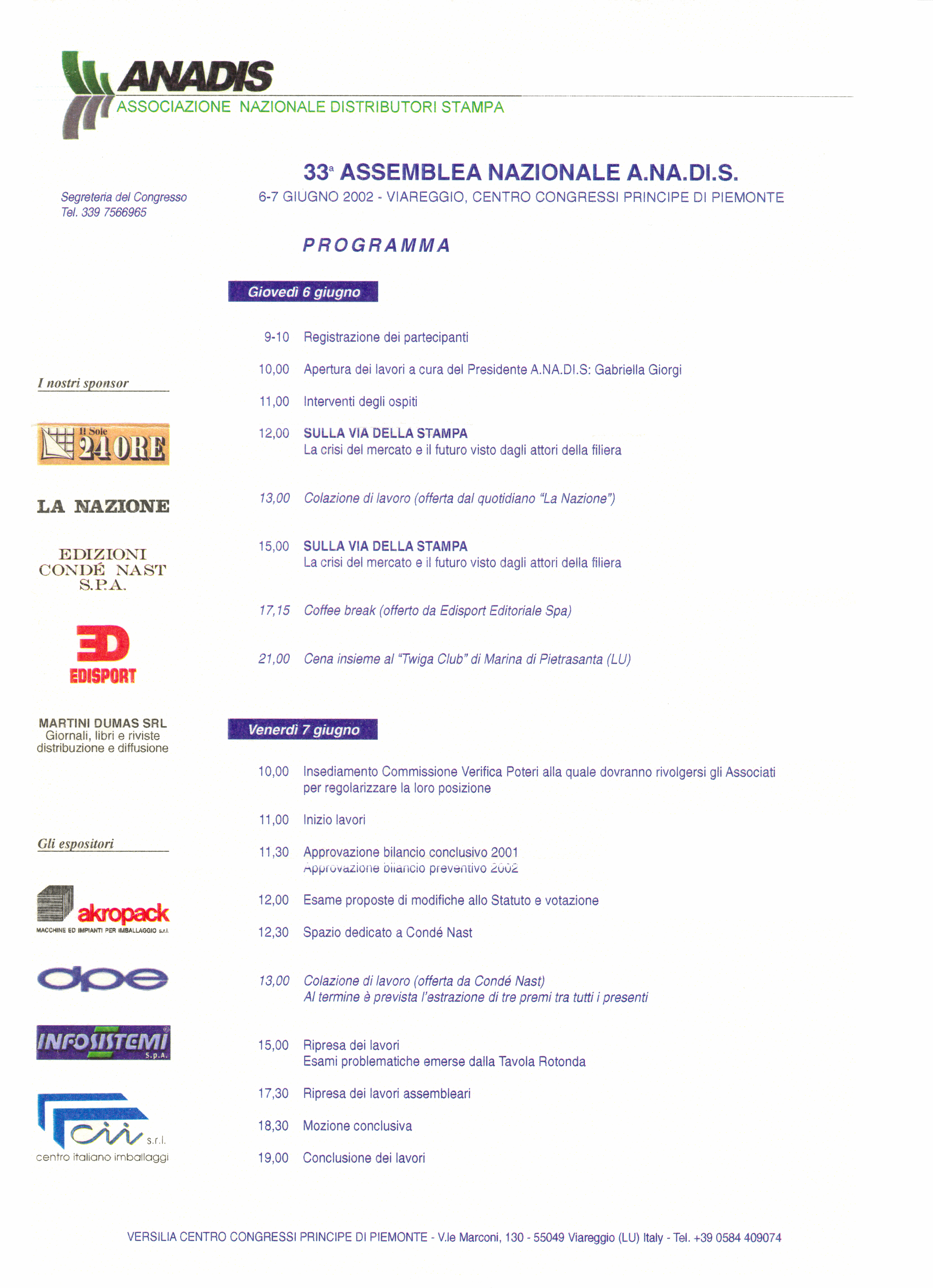 VIAREGGIO, 06 Giugno 2002, Centro Congressi Principe di Piemonte