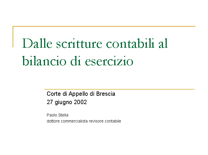 - Dalle scritture contabili al bilancio di esercizio