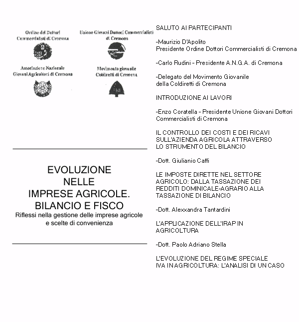 - Evoluzione nelle imprese agricole: Bilancio e Fisco riflessi nella gestione delle imprese agricole e scelte di convenienza